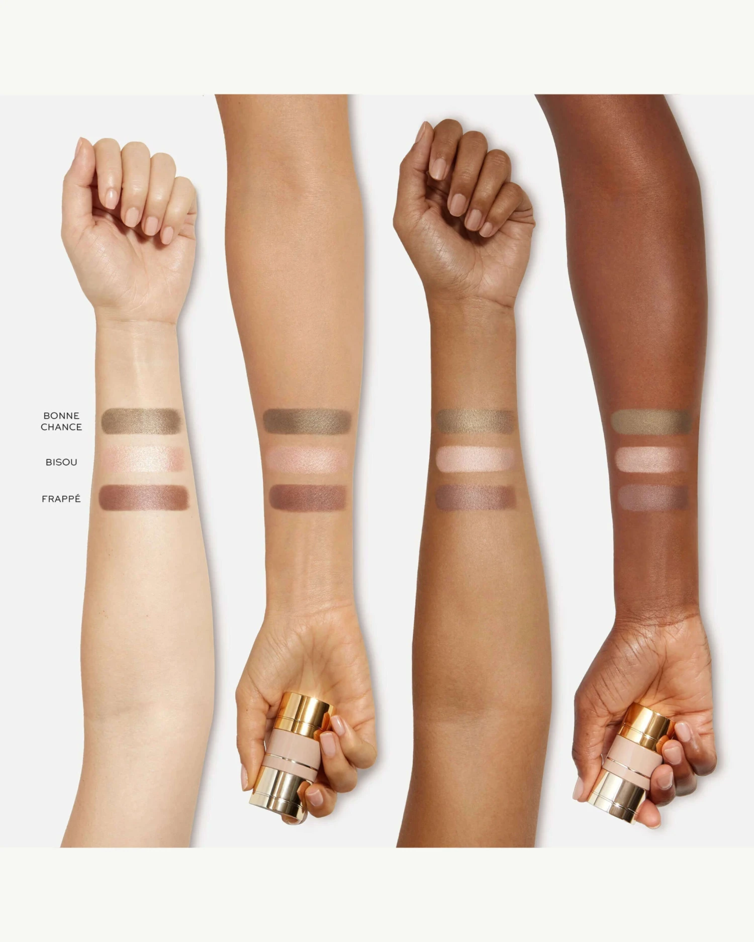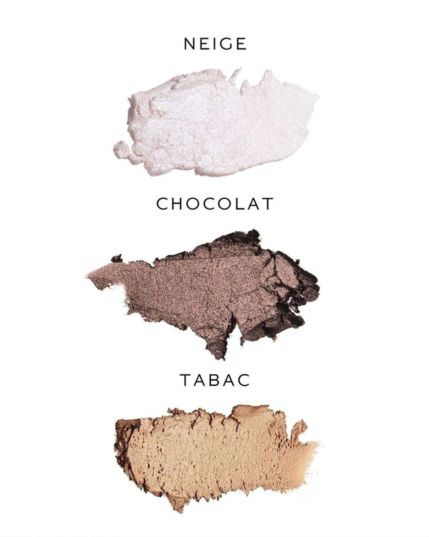- Les jours – chocolat/rich chocolate, tabac/warm bronze, neige/iridescent ivory