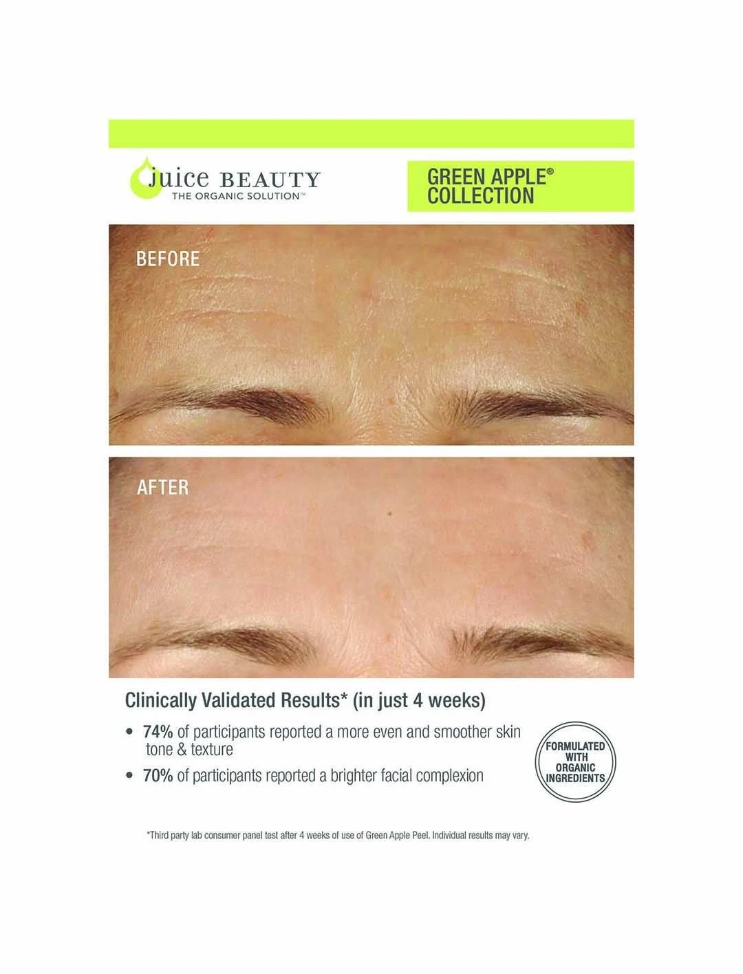 *In the clinical study referenced in the photos, participants used the Juice Beauty Green Apple Collection, which included this product and others.