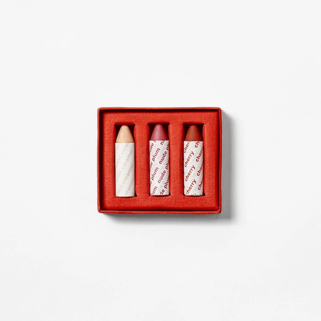 This Product Is: A set of three multi-use crayons for eyes, lips, and cheeks. Totally plastic free!