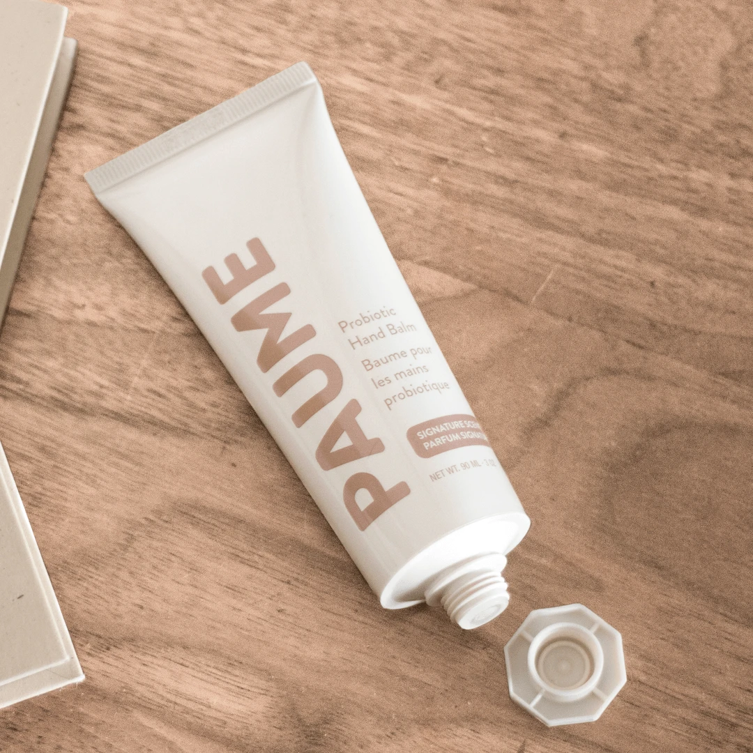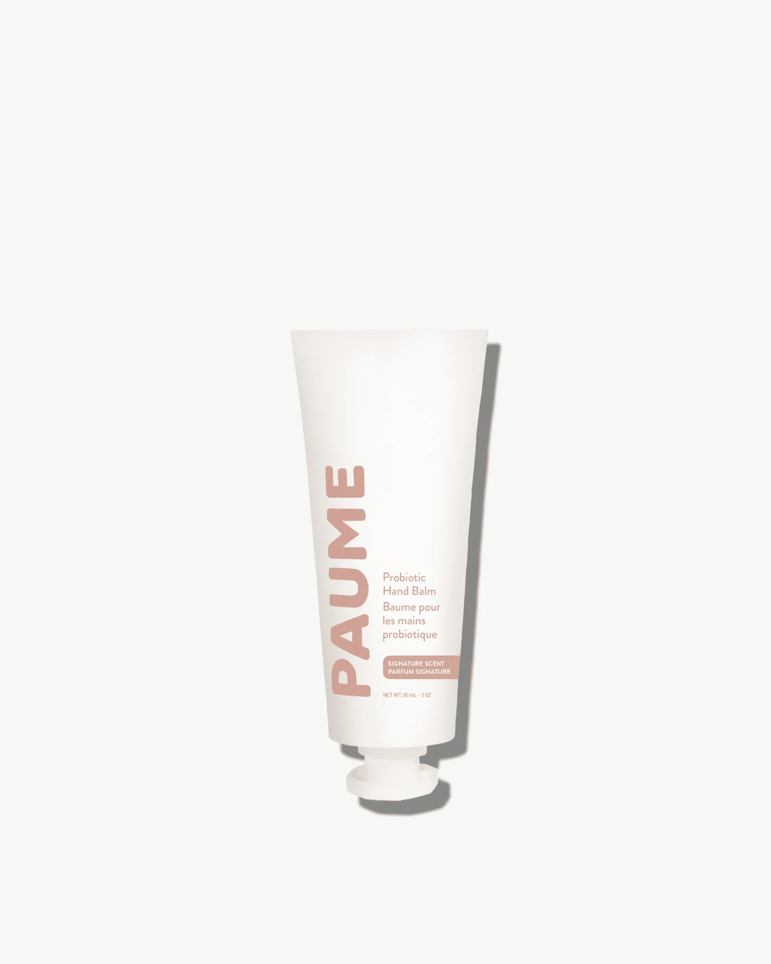 Product Description: Paume Probiotic Hand Balm is a rich, fast absorbing hand balm enhanced with natural probiotics and plant based emollients that deliver long lasting hydration while improving skin tone, elasticity and texture. It also minimizes fine lines with continued use.