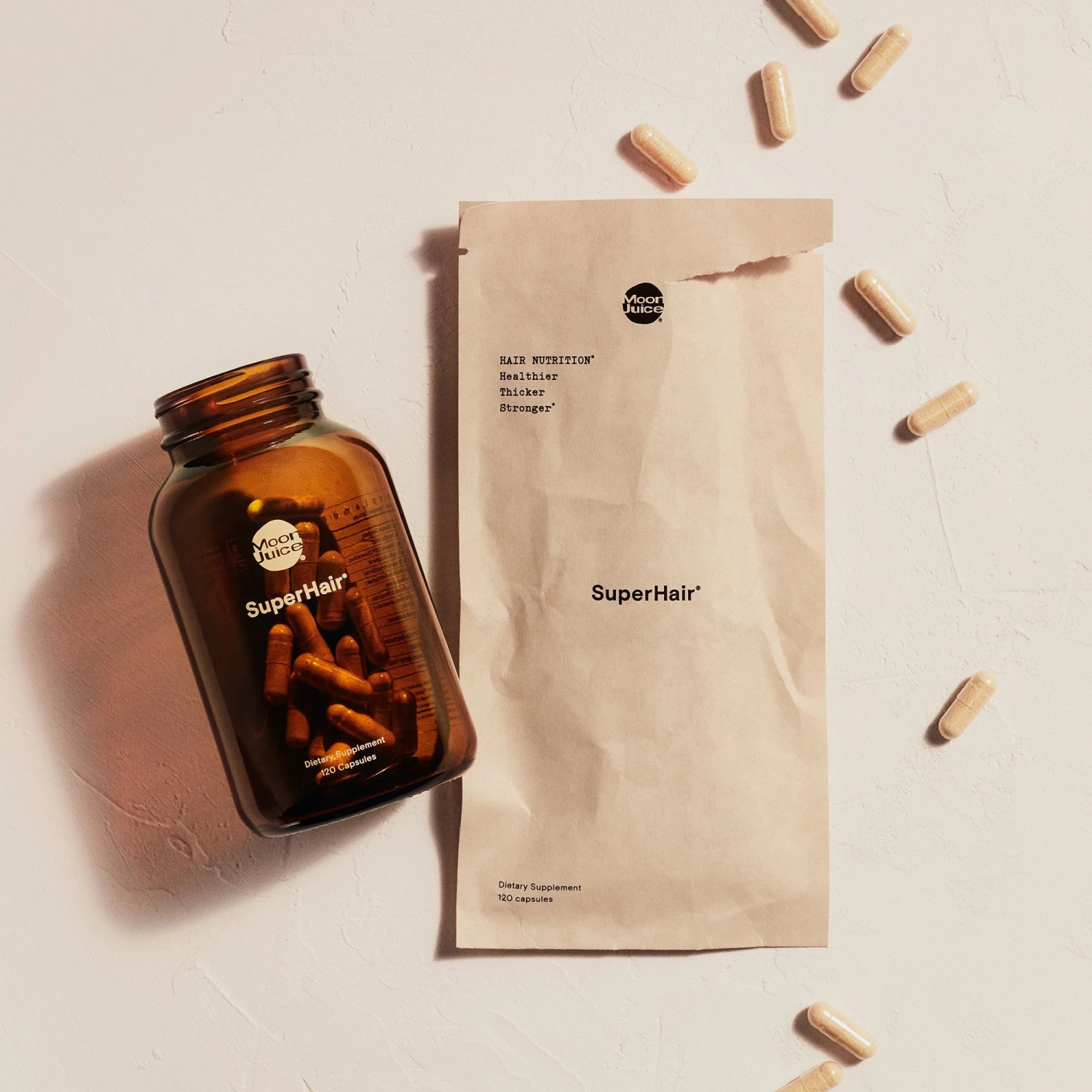 Why We Love It: Moon Juice SuperHair Daily Hair Nutrition is a potent complex of bioavailable and bioactive multi-vitamins, minerals, plant extracts and hair essentials like biotin, kelp, saw palmetto & horsetail plus full spectrum extractions of ashwagandha and ginseng combine to promote healthier, thicker, stronger hair.*