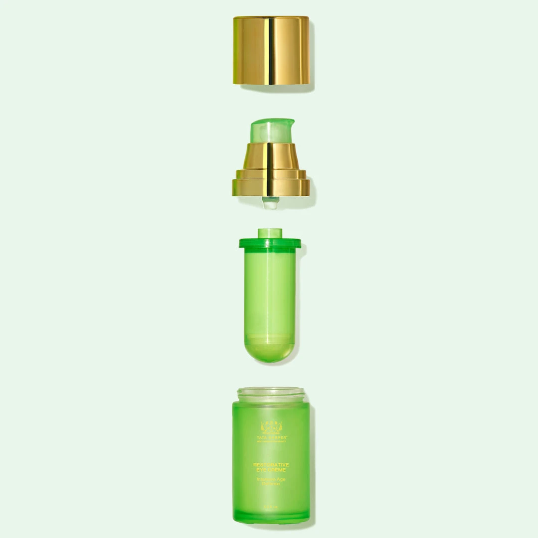Why We Love It: Tata Harper Restorative Eye Creme is a best selling eye cream that works to help minimize the appearance of fine lines, giving eyes a healthy and youthful look. Formulated with powerful peptides, this eye creme hydrates and may help to reduce puffiness, and safflower Oleosomes, a natural source of Vitamin E, deliver rich moisture to plump the look of skin and help smooth roughness. Daffodil Bulb helps keep skin looking elastic and minimizes the look of wrinkles. This Restorative Eye Crème is engineered with a sustainable refill system that locks into your reusable bottle. Remove the cap from the refill pod, then assemble immediately.