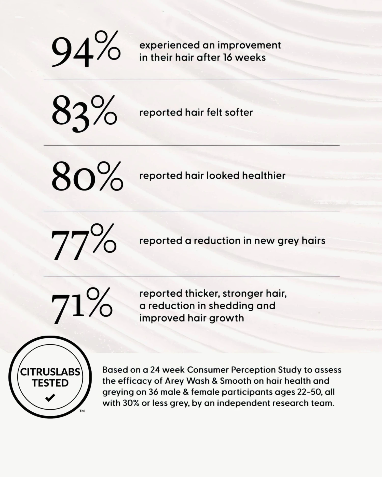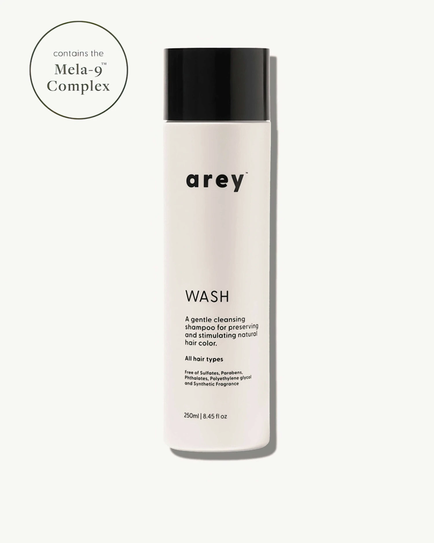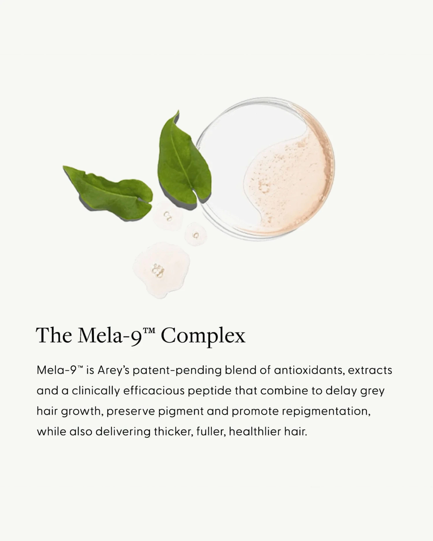 This product is: A proactive and clean shampoo formulated with Arey’s Mela-9™ Complex to delay grey hair and reduce common signs of aging hair by stimulating cell production, resulting in pigment preservation as well as stronger, healthier strands.